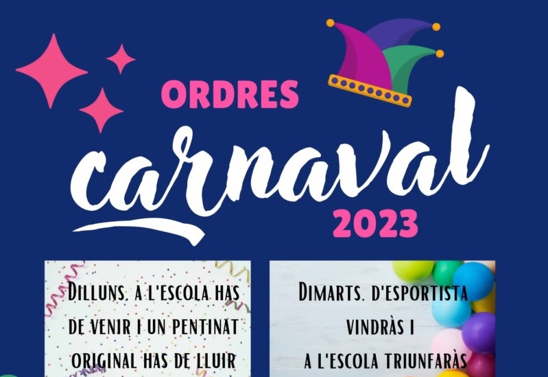 Un any més, el Rei Carnestoltes vol que visquem el Carnaval a l’Escola Torroja i Miret de la millor manera possible i ja ens ha fet arribar les consignes que complirem durant la setmana del 24 al 28 de febrer.