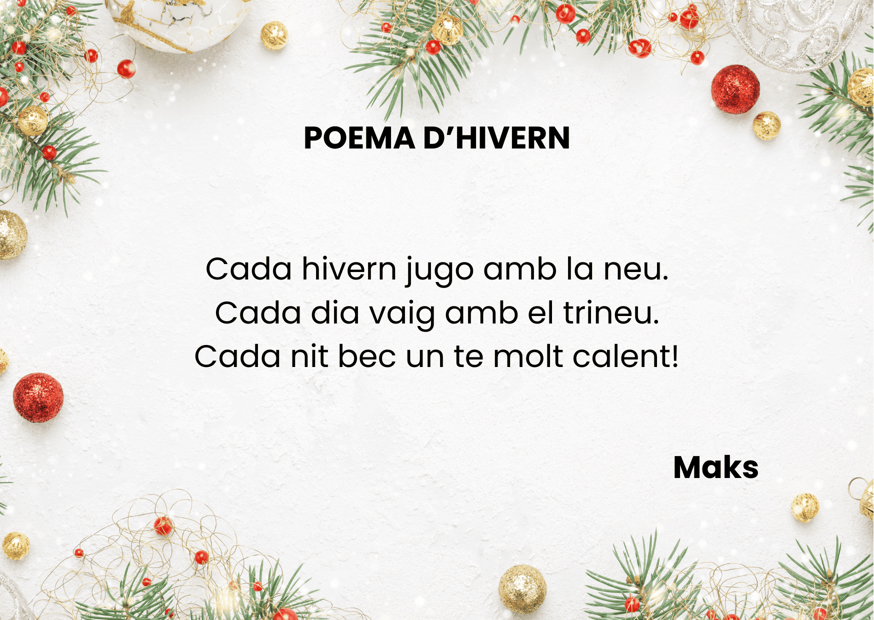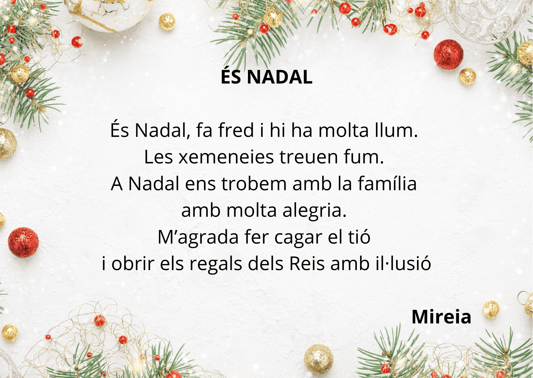 Aquestes últimes setmanes els alumnes de primària ens hem inspirat i hem creat poemes nadalencs. Els hem posat a dins d’una caixa a l’entrada de l’escola per a que tothom qui vingui els pugui llegir i deixar el seu poema. Us animeu a crear poemes nadalencs? Ens encantarà molt llegir-los quan tornem de les vacances. Moltes gràcies!