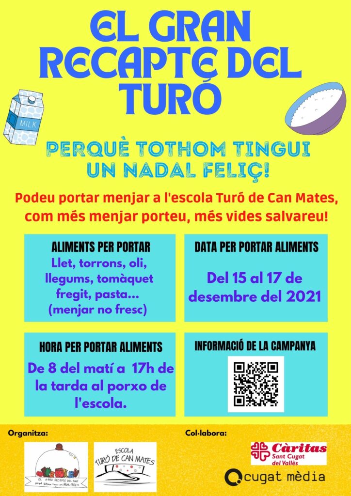L’alumnat 5è de l’Escola Turó de Can Mates, ha iniciat avui mateix la campanya de recollida l’aliments. Tota aquesta campanya publicitària s’ha fet de la ma de Cugat Mèdia i amb ajuda de famílies expertes. Us deixem aquí tota la campanya que també trobareu per Mirasol centre. https://www.cugat.cat/noticies/societat/156639/cugat-media-i-l_escola-turo-de-can-mates-engeguen-un-projecte-d_alfabetitzacio-mediatica