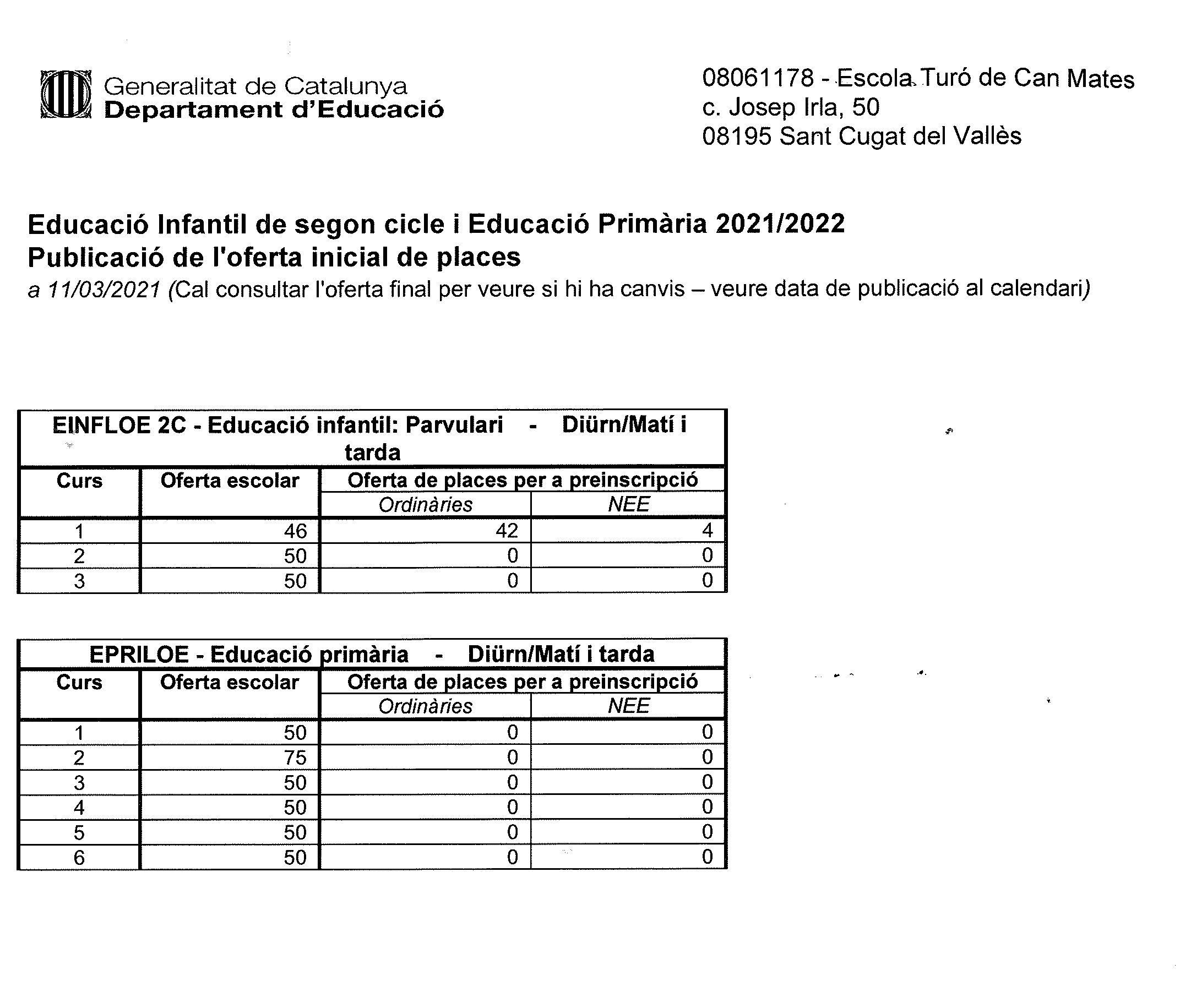 Escola d'infantil i primària a Sant Cugat