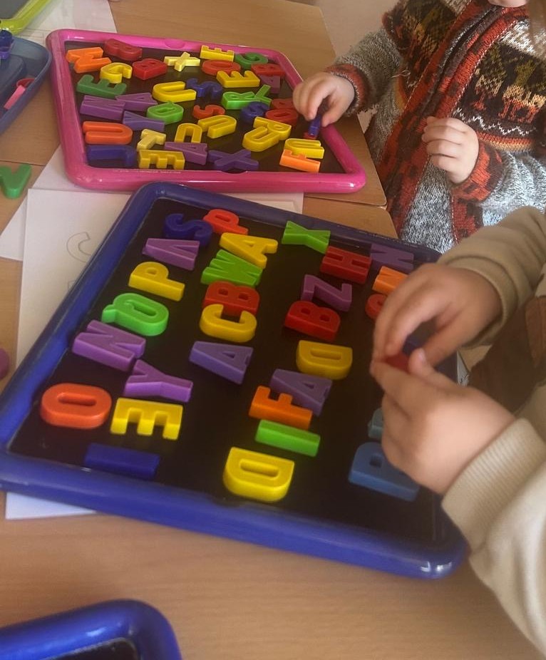 També hem començat a identificar el nostre nom i el dels companys i companyes, i juguem amb les lletres per reconèixer-les i familiaritzar-nos-hi.