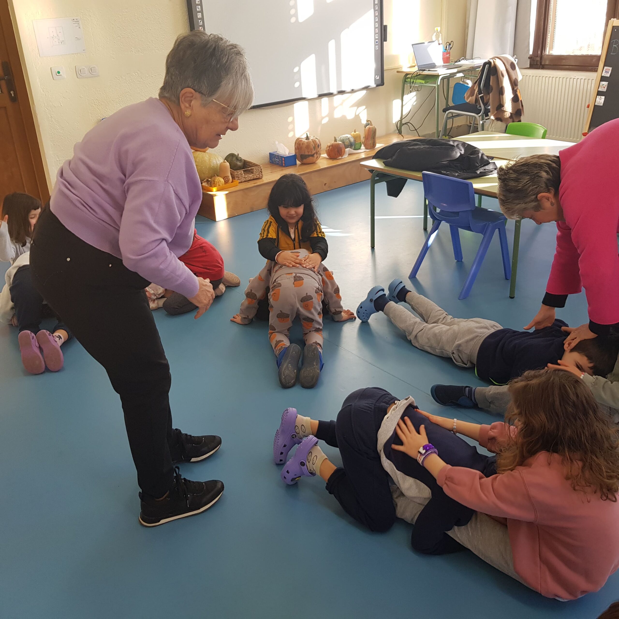 Ens ha explicat i hem participat en la història del Tabalet; del Caragol i l’Herba de poniol; i de les Set Cabretes. Entre conte i conte, hem fet jocs de falda i de cantarella (Si vas a la carnisseria, el matalàs, la barca,…). Estàvem encantats en cada nova proposta!
