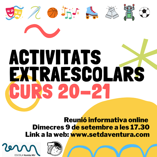 Benvolgudes famílies. Us adjuntem el link per la reunió d’aquesta tarda: enllaç reunió dia 9 de setembre a les 17.30h A aquest link trobareu l’enllaç per inscriure els vostres fills i filles a les extraescolars: enllaç inscripció Tal i com us vam avançar a final de curs, us informem de les extraescolars per al proper […]