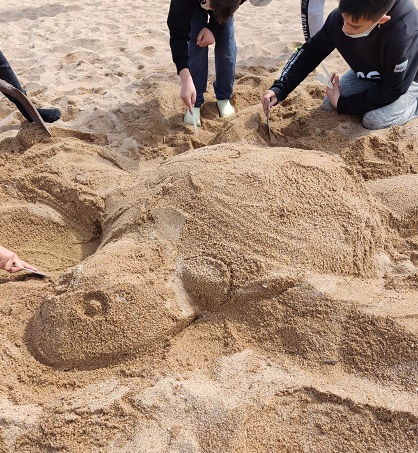 A més, també hem començat l’activitat conjunta d’escola. Donat que el tema del curs és l’art! Hem anat a fer Escultures de Sorra a la platja!