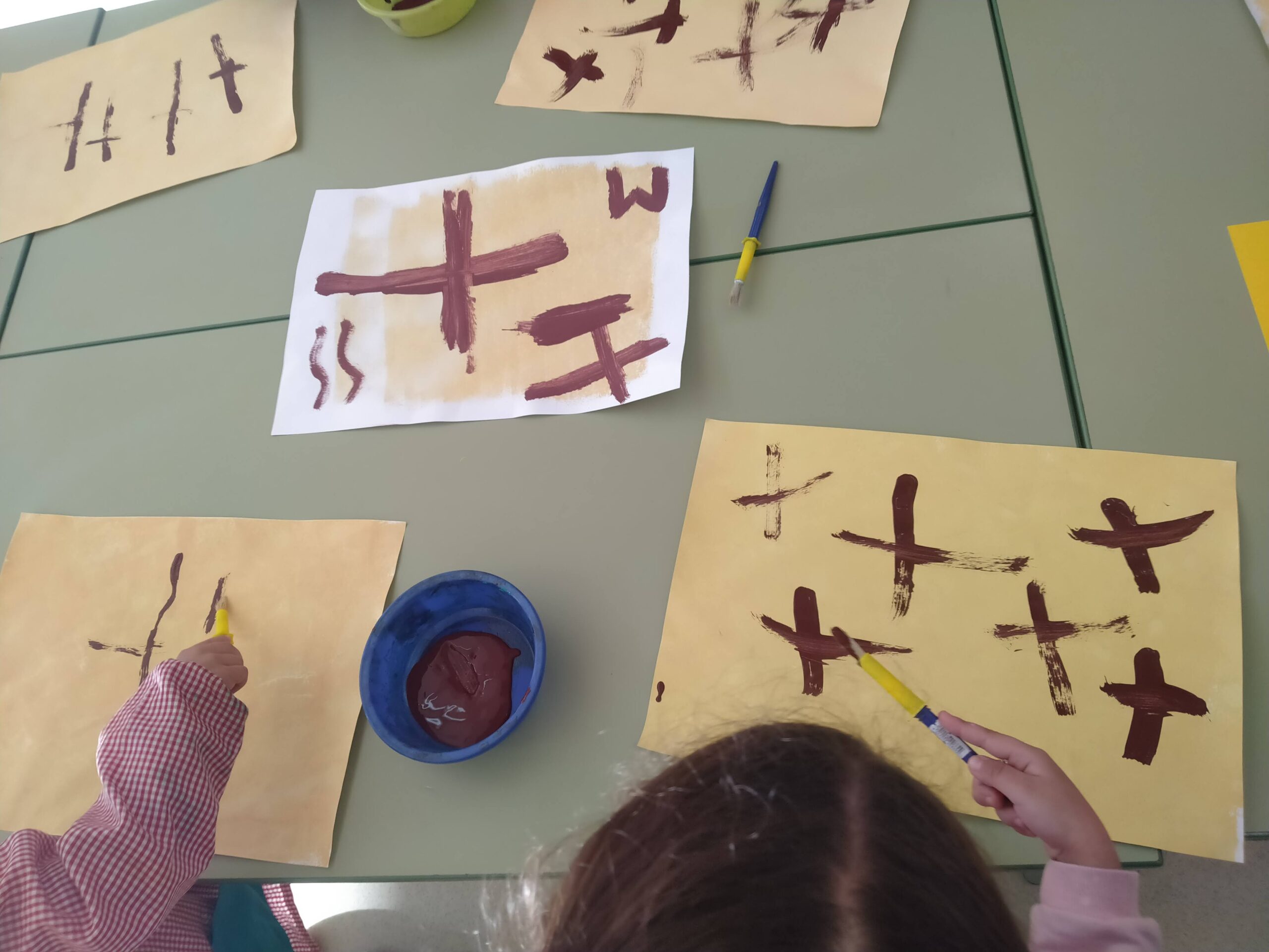 A I3 seguim amb el treball de traç combinat amb la creació i les formes geomètriques. En aquest cas hem fet quadrat concèntric amb colors d’hivern: blau, lila. blanc. Experimentar amb el pincell, primer amb una consigna i després de manera més lliure… Llegeix més»
