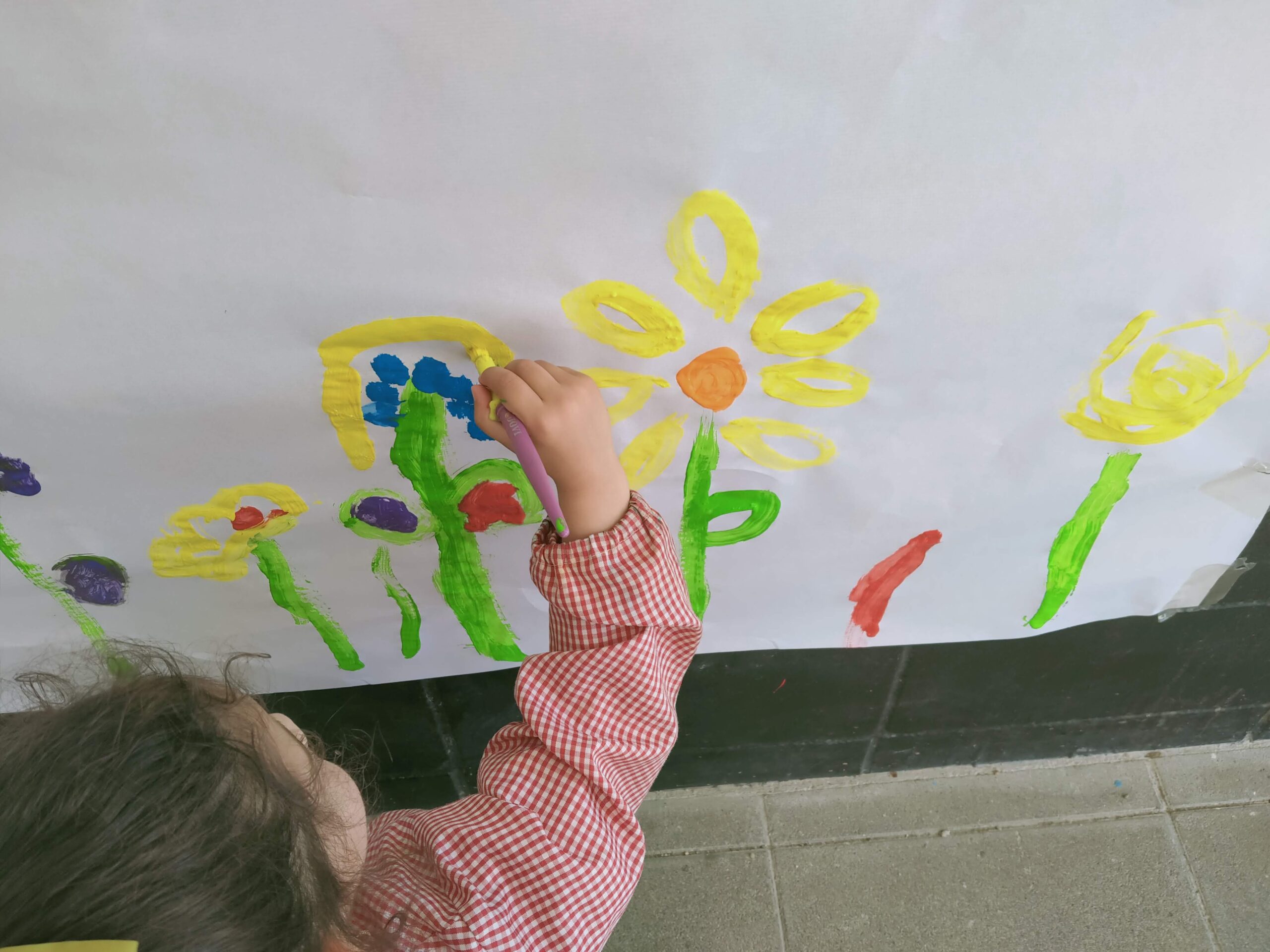 Els nens i les nenes de I3 hem pintat les flors que hem vist i ens ha quedat un mural molt bonic