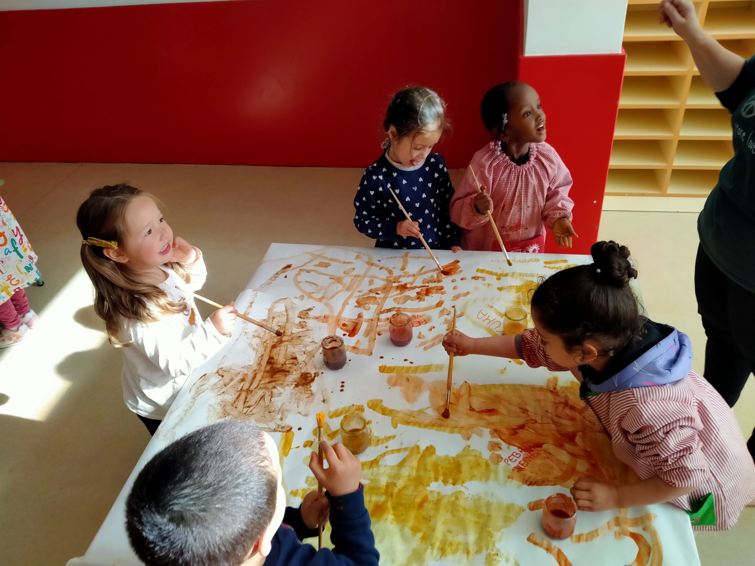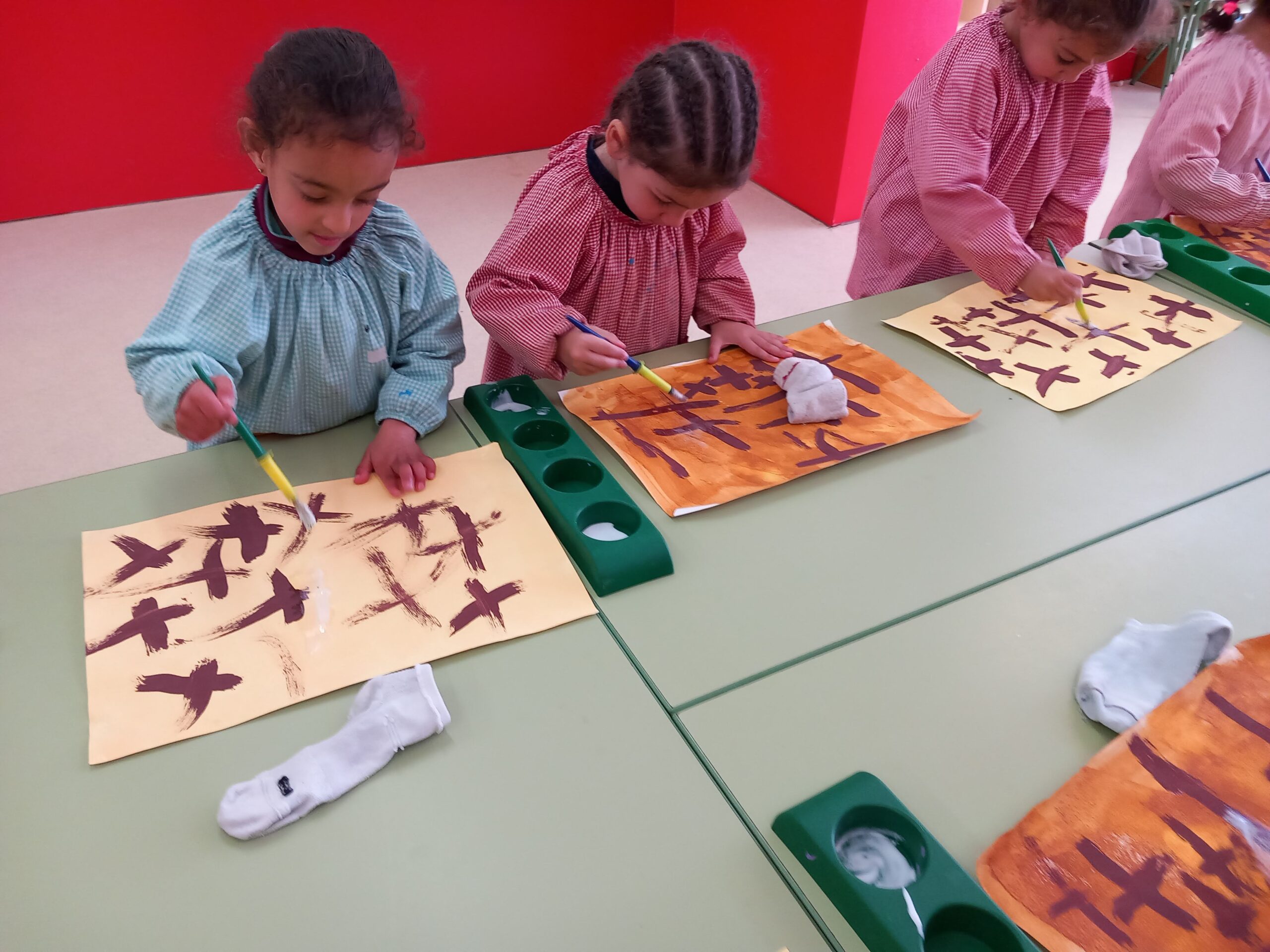 A I3 seguim inspirats i inspirades en Tàpies. Aquest quadre tant elabaorat ens ha fet pràcticar moltes tècniques plàstiques: barreja de colors, aiguada, pintar amb rodet, fer creus amb pinzell, enganxar mitjò amb cola, posar les nostres empremptes amb pintura. Tot… Llegeix més»