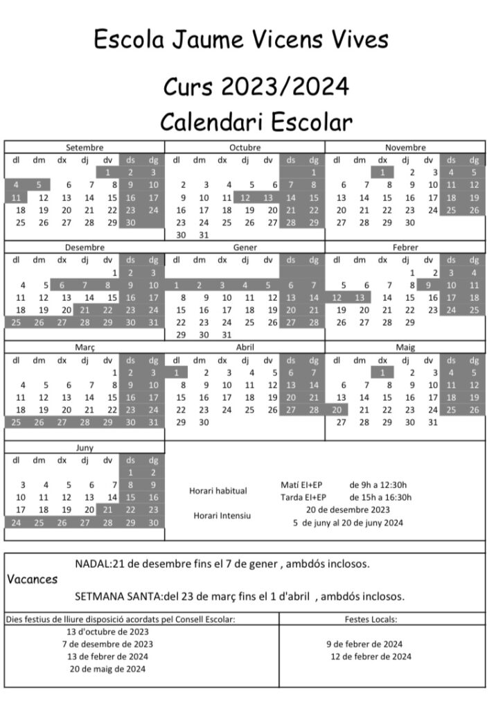 Us publiquem el calendari per a aquest nou curs 2023-2024. Us el podeu descarregar en PDF clicant a l’enllaç.