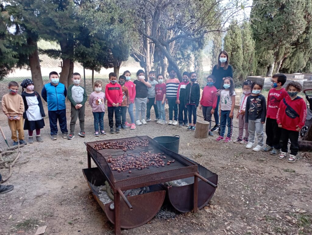 Aquest curs hem pogut celebrar la castanyada! Al matí els nens i nenes de Primària hem fet tallers intercicle i hem anat a veure com torraven les castanyes. A la tarda ens les hem menjat a la pista. Volem agraïr als membres de l’AMPA per la seva col·laboració i per portar-nos sucs per fer passar millor les castanyes!