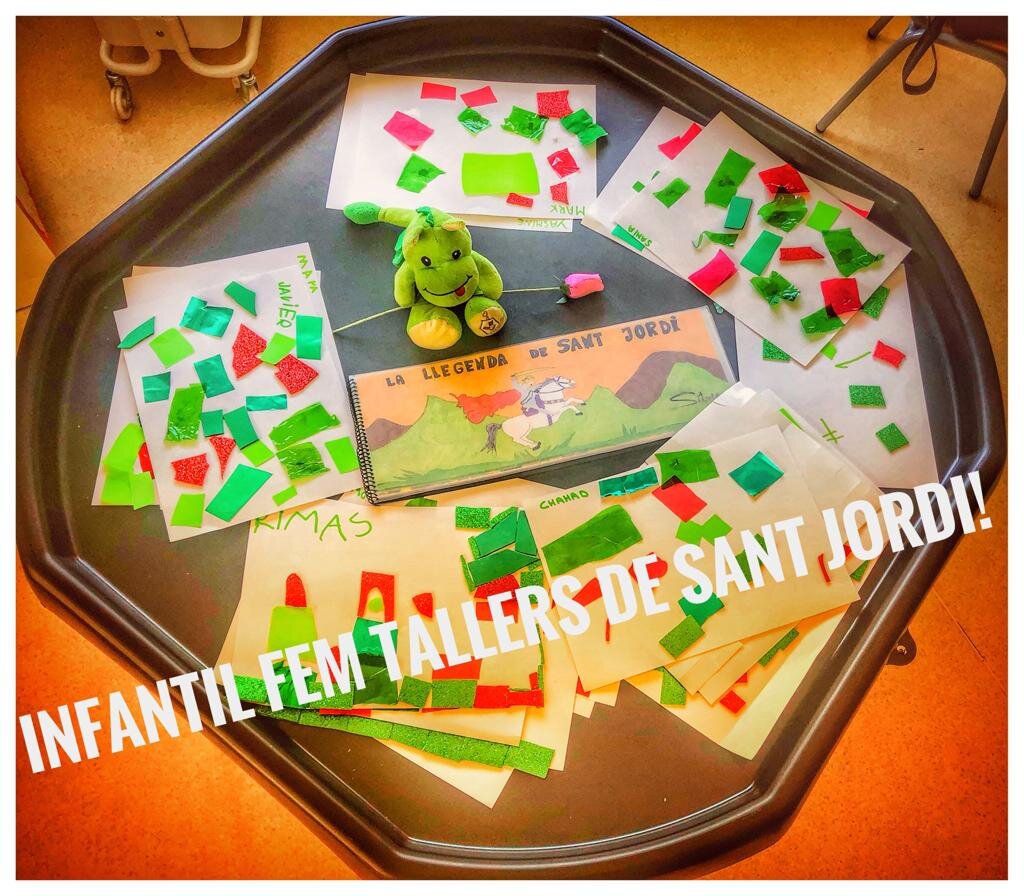 A l’escola estem fent moltes activitats i aquesta tarda els nens i les nens d’infantil han participat en els tallers de Sant Jordi.