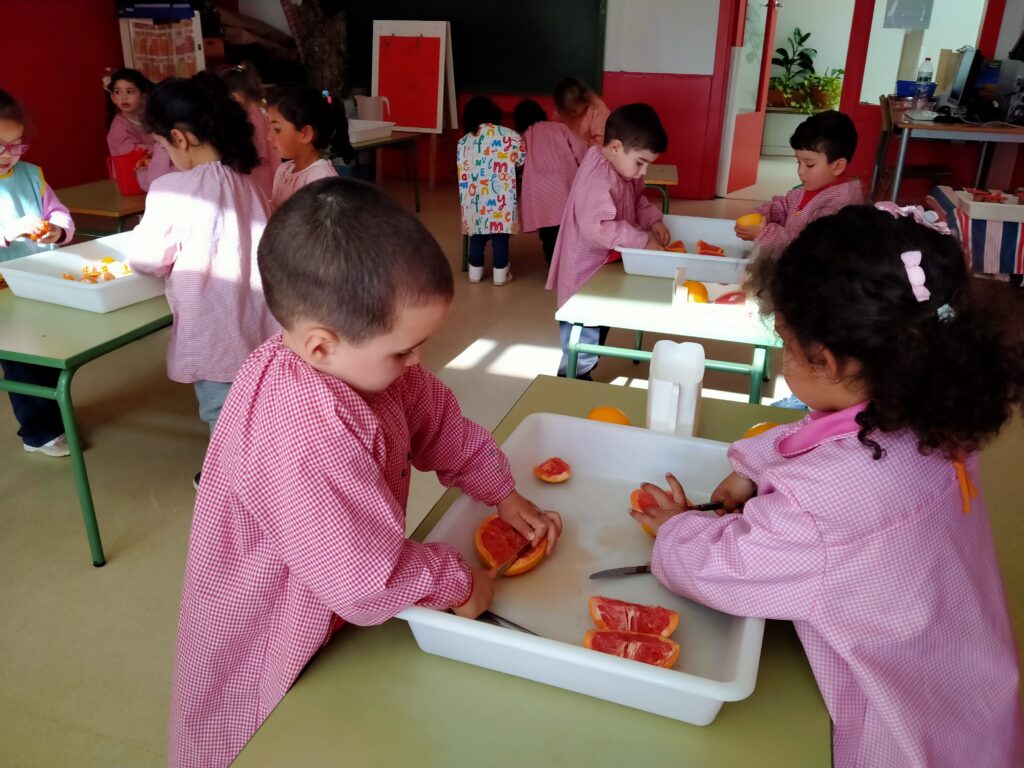 A les safates d’experimentació hem trobat cítrics d’hivern: ttaronges, mandarines, llimones, llimes, aranges.. Hem olorat, tocat, mirat, tastat, manipulat, tallat…