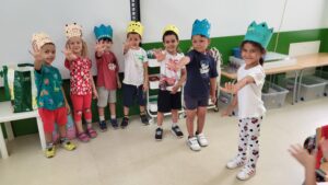 Avui ha estat un gran dia. Després de fer els jocs d’aigua matinals hem arribat a l’aula amb molta gana. Els nostres companys i companyes, que fan anys a l’estiu, ens han convidat a un súper esmorzar. Ells i elles també tenen dret a tenir el seu dia especial a l’escola i emportar-se la corona per utilitzar el dia del seu aniversari.