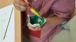Aquesta setmana hem estat preparant la nostra rosa de Sant Jordi. Els nens i nenes han participat amb molta alegria i entusiasme. Estan fets uns i unes artistes! Es tractava de pintar un pal de pinxo amb retoladors, una ouera amb pintura i fer una bola amb paper de seda. Mireu quines creacions…