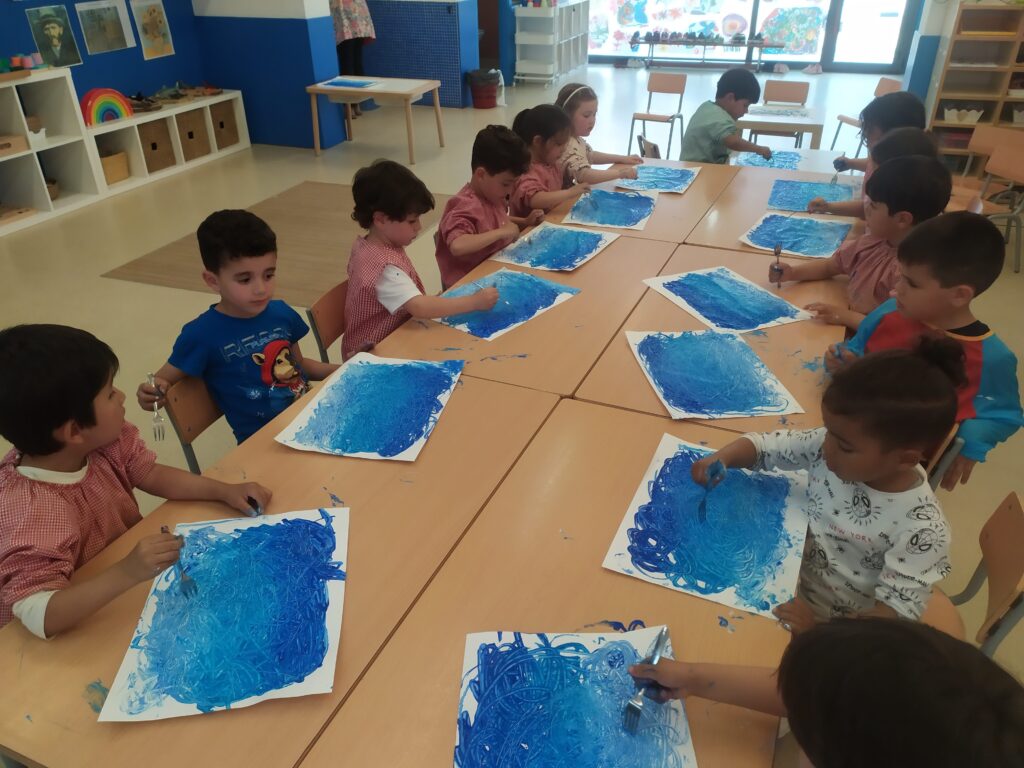 - Plàstica: iniciem autor de SOMART, Vincent Van Gogh. Conversem i observem la seva obra “Nit estrellada” i en reproduïm un fons amb bastonets d’orelles i forquilles.