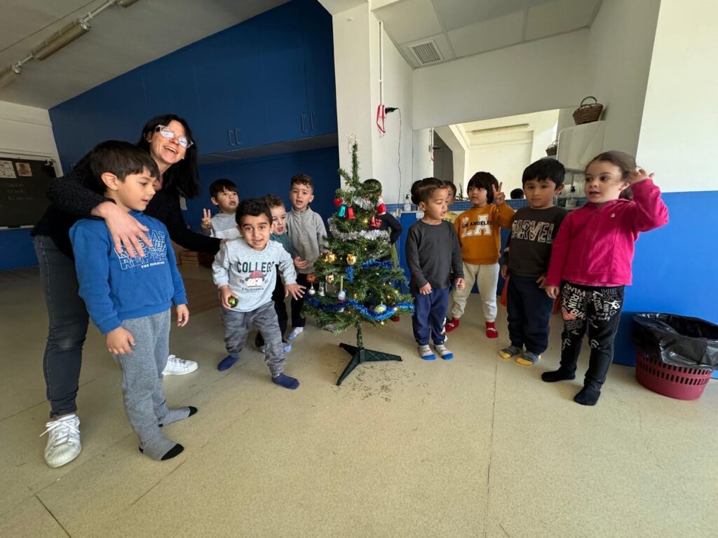 3. Decoració de l’aula amb l’arbre de Nadal, les figures del pessebre i un joc amb peces de velcro nadalenques.