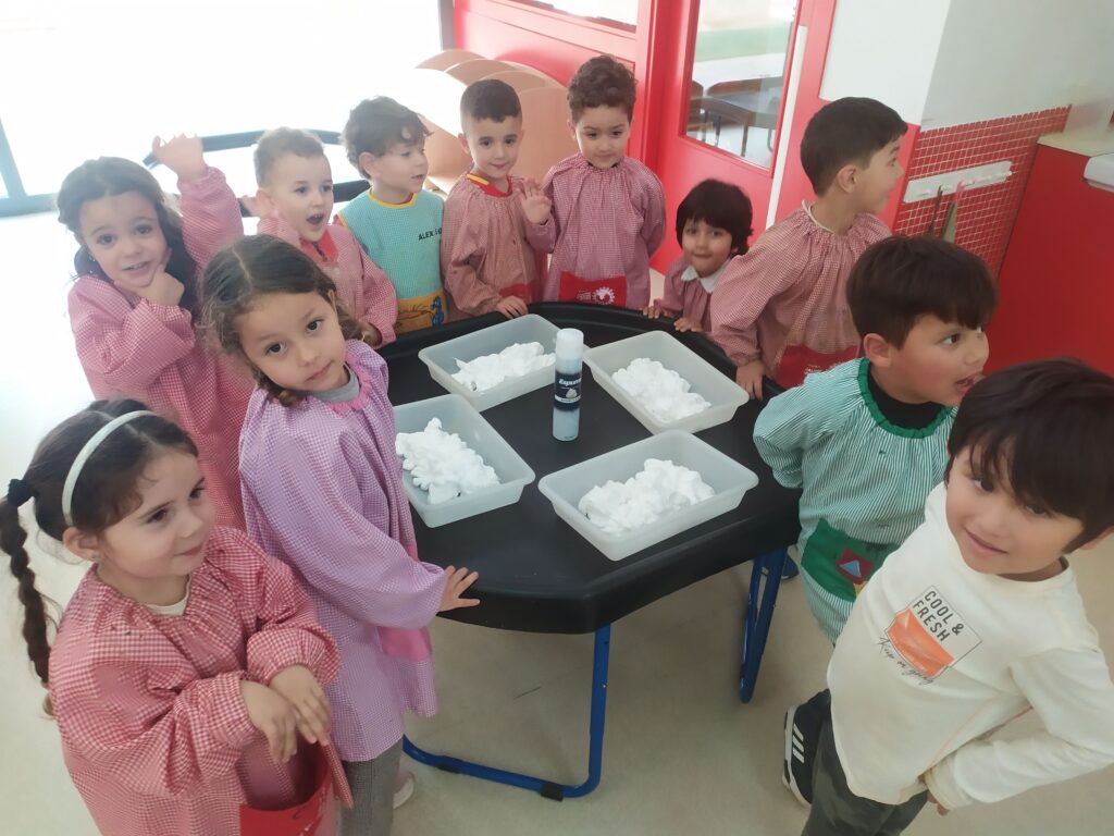 • Escuma d’afaitar i colorants: barrejar, observar i sentir,