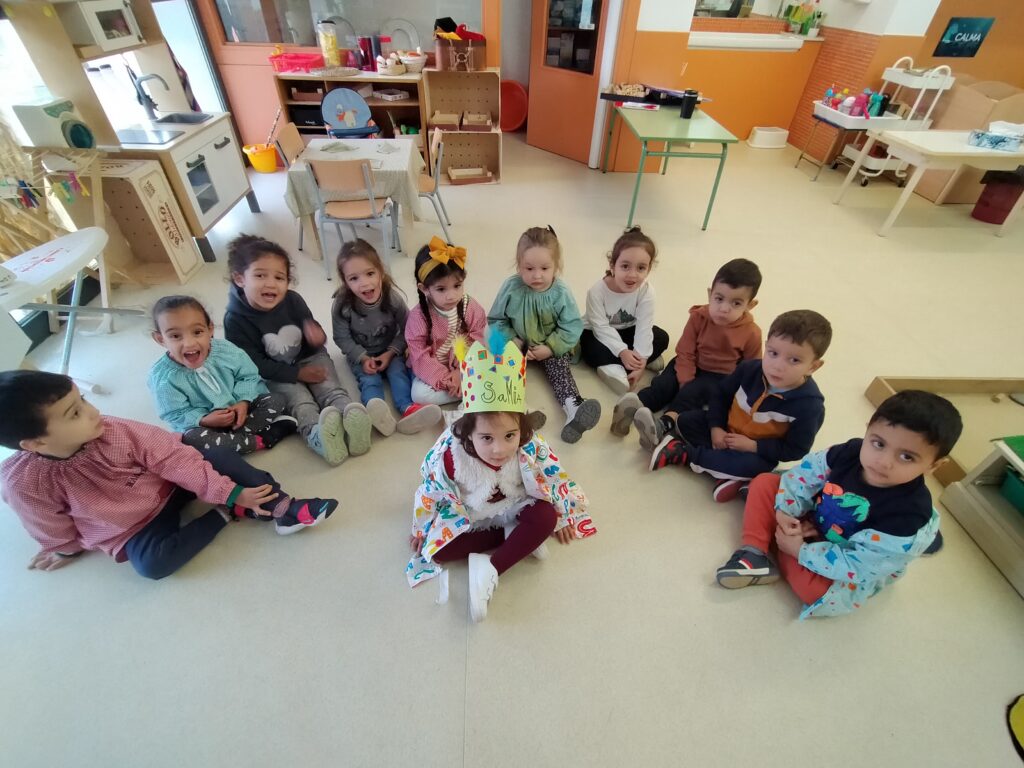 P3 A feliç aniversari SAmia! Escola07/12/22 JA tots tenim 3 anys!!! per molt anys Samia. Per celebrar-ho la SAmia ha portat esmorzar per a tots i totes, hem fet una corona i hem cantat i ballat.