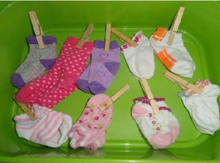 A la classe P3-A tenim una pila de mitjons i els escampem per terra! Desendreçar-los és molt divertit. Després juguem a trobar la parella de cada mitjó i a descriure si: són grans o petits? De quin color són?… Finalment, potser amb una mica d’ajuda, els pleguem, i així tot queda ben recollit!
