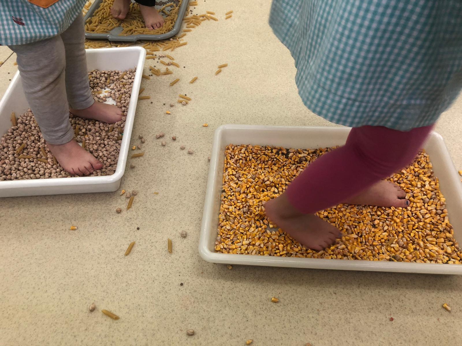 Heu provat mai de caminar sobre diferents textures? Els nens i les nenes de la classe dels espavilats ens hem tret les sabates i els mitjons per caminar sobre un camí sensorial de safates amb diferent material (macarrons, llenties, sorra, fusta, suro, cigrons, papers, roba suau…). Hem notat diferents sensacions a través dels peus i n’hem gaudit moltíssim, ens ha encantat tant que no volíem que s’acabés la sessió! Us convidem a veure algunes fotos d’aquest moment!