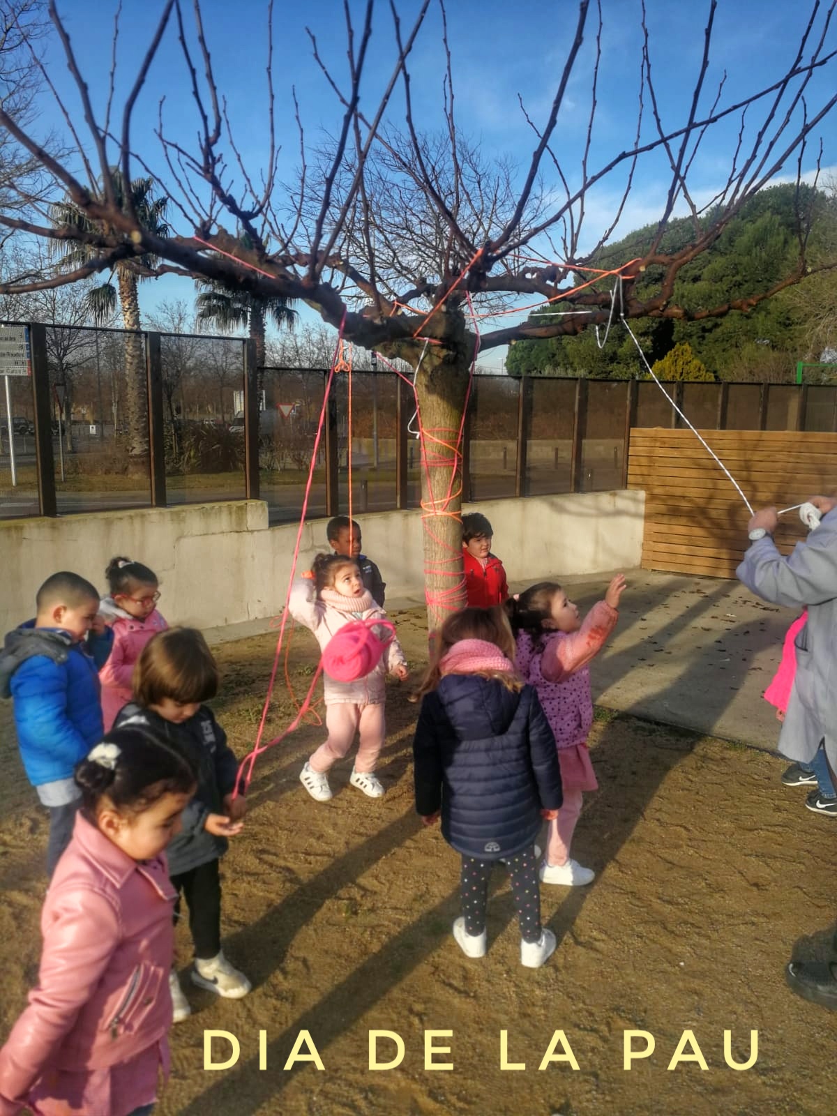 Embolcallem un arbre del pati amb bones intencions d’amistat, pau, respecte…