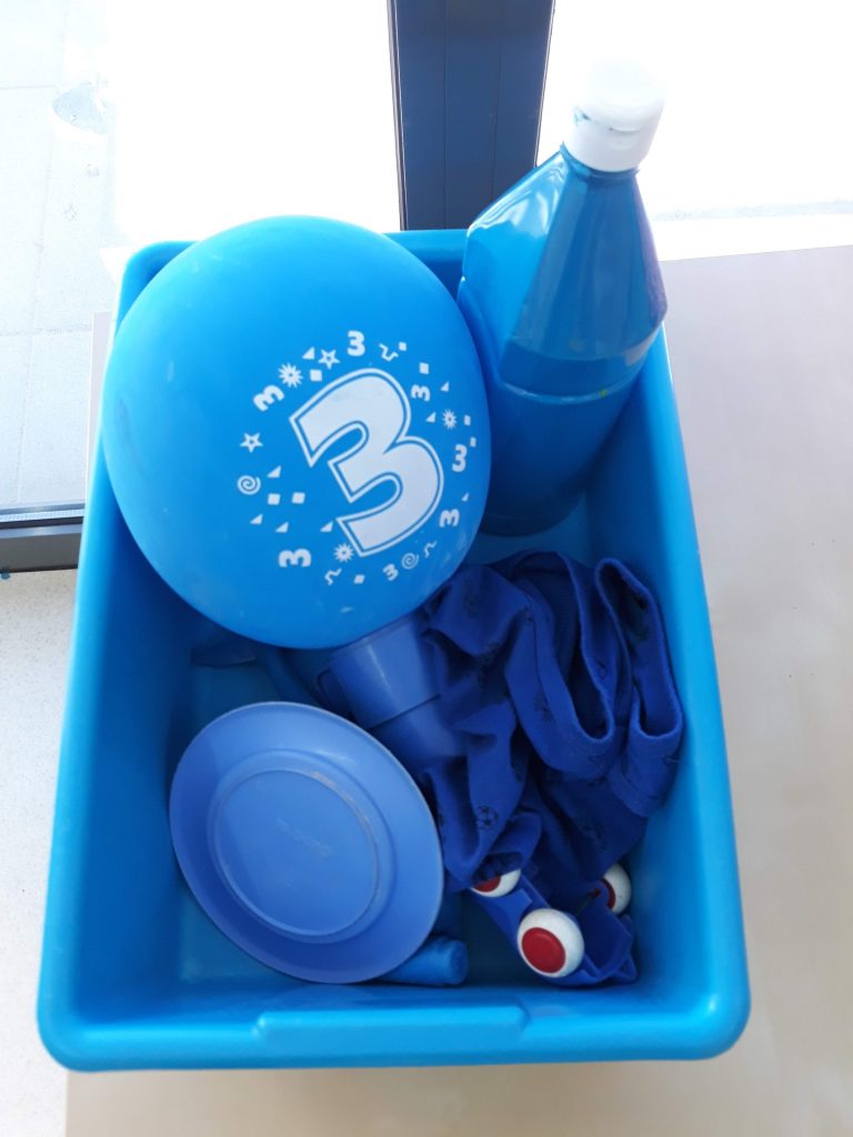 Hem treballat el color blau. Hem buscat coses blaves, les hem anomenat. També hem portat coses de casa. Hem cantat la cançó del color blau…