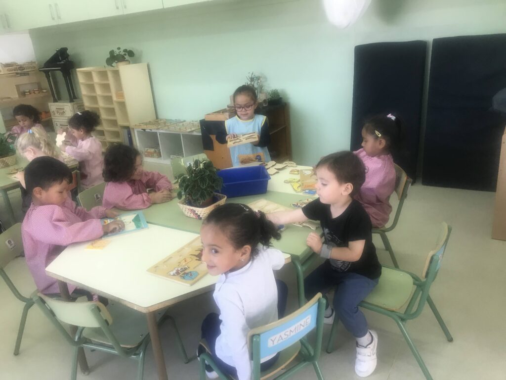 A P3, una vegada a la setmana fem encaixos. Els encaixos s’assemblen una mica els puzzles, són jocs on cal encaixar a la figura que deixa el buit, la forma de la peça que encaixem. És un joc que activa la concentració, la calma, l’abstracció, la lògica, la geometria, la memòria visual, la intel·ligència espacial i les habilitats manuals. I això de bon matí!!