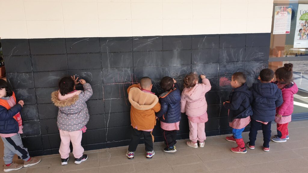 Bona tarda famílies! A P3 aprofitem a l’hivern quan surt un raig de sol per fer alguna activitat a l’exterior. Aquesta vegada hem anat a dibuixar a les dues parets (pissarres) que tenim al pati d’infantil. La veritat és que som uns privilegiats i unes privilegiades. Ens encanta el nostre pati!