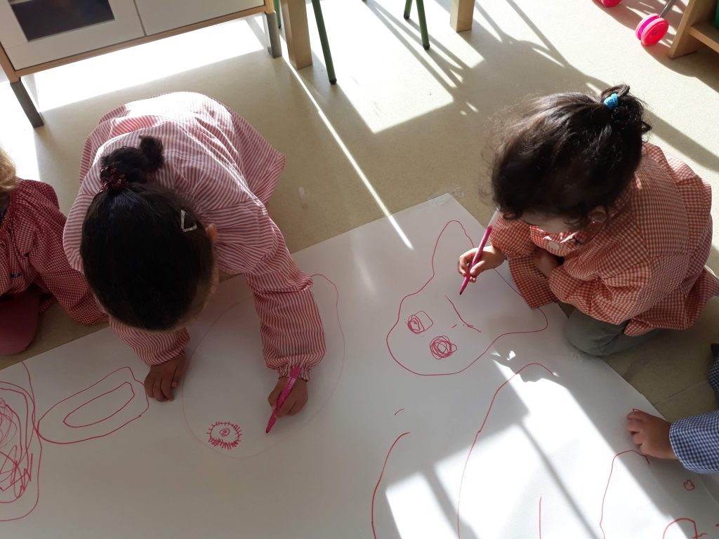 Les nenes i nens de P3 seguim treballant el coneixement del nostre propi cos, concretament la cara. ens mirem al mirall, verbalitzem les parts del cos, mirem una foto, reproduïm una foto a la pantalla, i finalment intentem elaborar, amb retolador el nostre propi retrat.