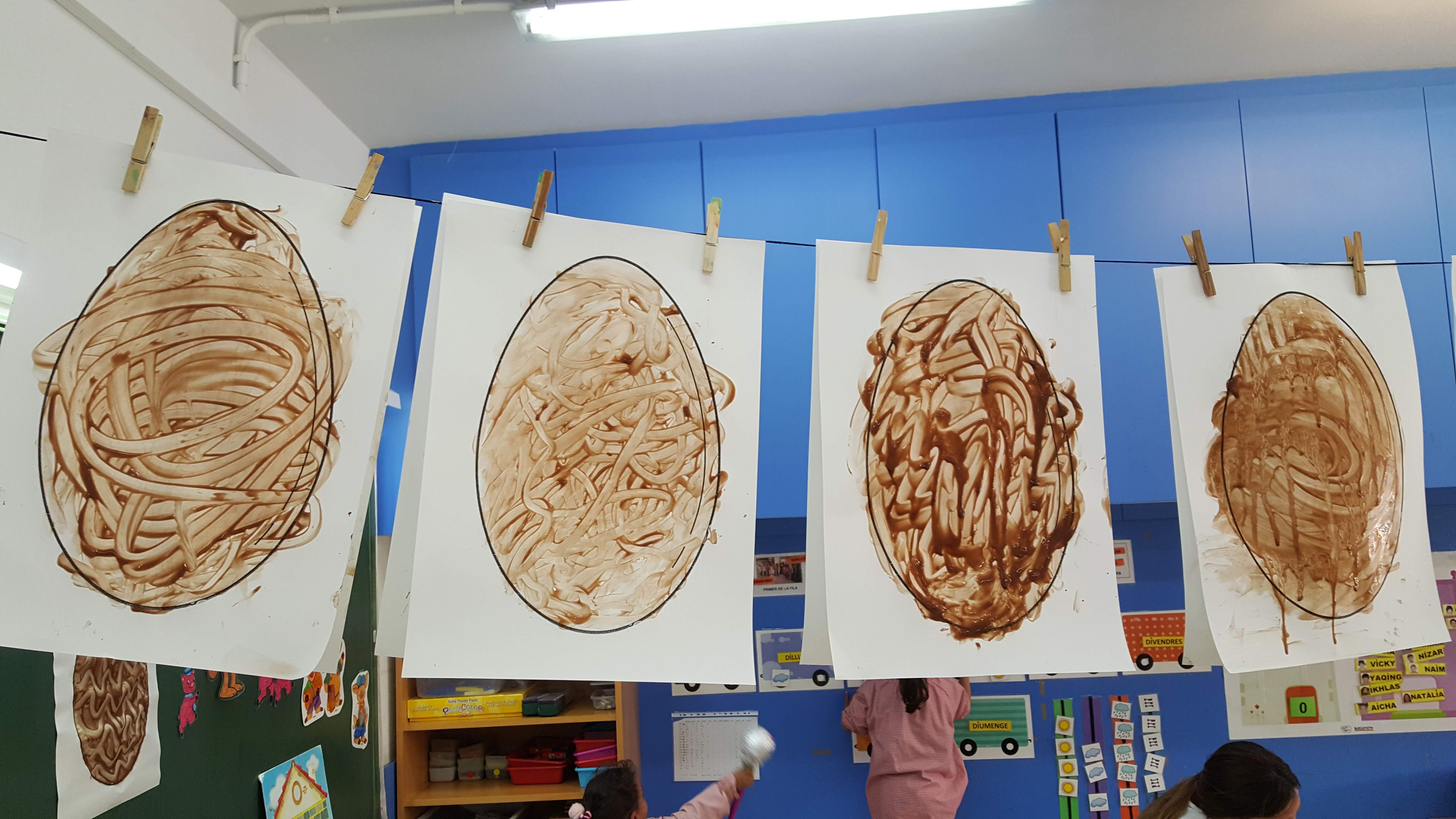 Quina millor manera de pintar l’ou de Pasqua que fent servir els nostres dits, les nostres mans i xocolata desfeta !!