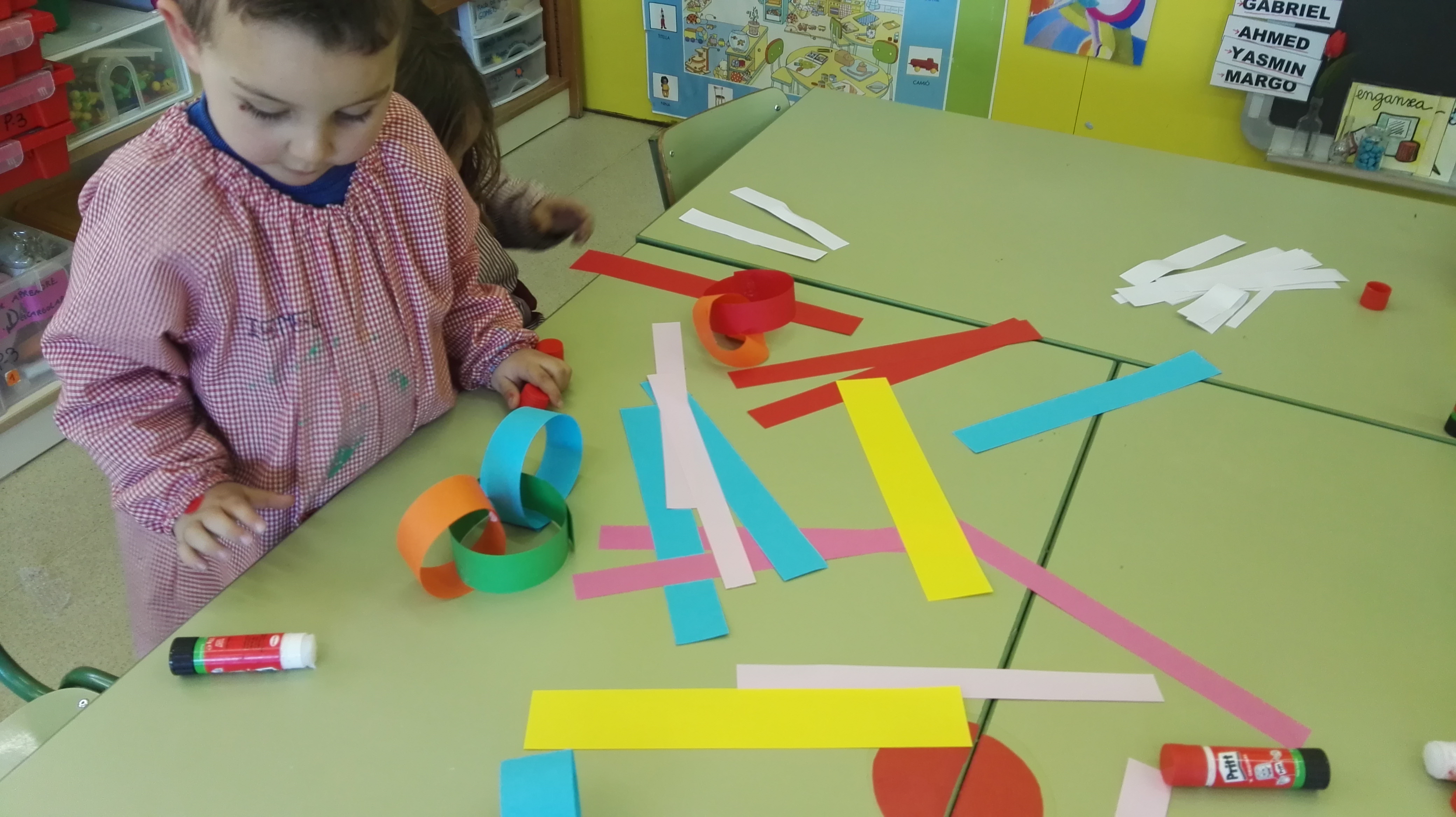 Fa uns dies vam fer una activitat a P3B molt bonica i senzilla per introduïr-los al concepte de volum a partir de tires de paper retallades. Del pla vam passar al volum simplement enganxant-les amb cola.