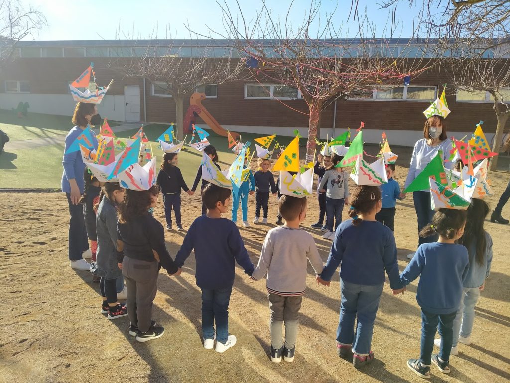 Aquest any, enlloc d’una disfressa hem dissenyat i creat un barret. La temàtica de l’escola ha estat el mar. I p4 ha triat fer una vaixell. Ens ha portat molta feina. pintar el vaixell amb pintura de dits, tallar, confegir i enganxar el nom a la vela de la barca, modelar dues àncores i un ham amb escura pipes, crear les banderoles i enganxar-les, escriure en una bandera…. buff quina feinada… els ha quedat fantàstic!!!