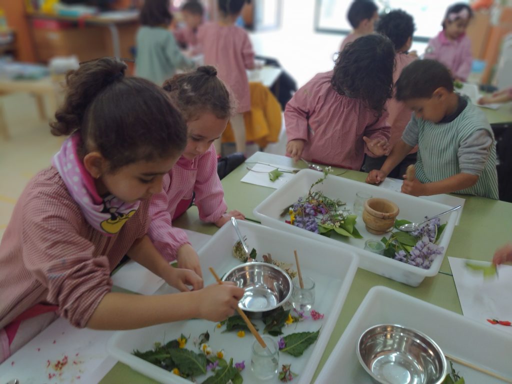 A P4 donem la benvinguda a la primavera experimentant amb flors i fulles. Els nens i nenes han anat a buscar flors amb les seves famílies i les han portat a l’escola. Allà les hem olorat, les hem tocat, les hem mirat. Hem facilitat alguns estris: bols, morters, culleres, gots d’aigua, pinzells, pals. I han començat a experimentar i manipular i hem descobert els tints naturals de les flors!!! Hem esmicolat, picat, fregat, premut… I sobretot hem gaudit!