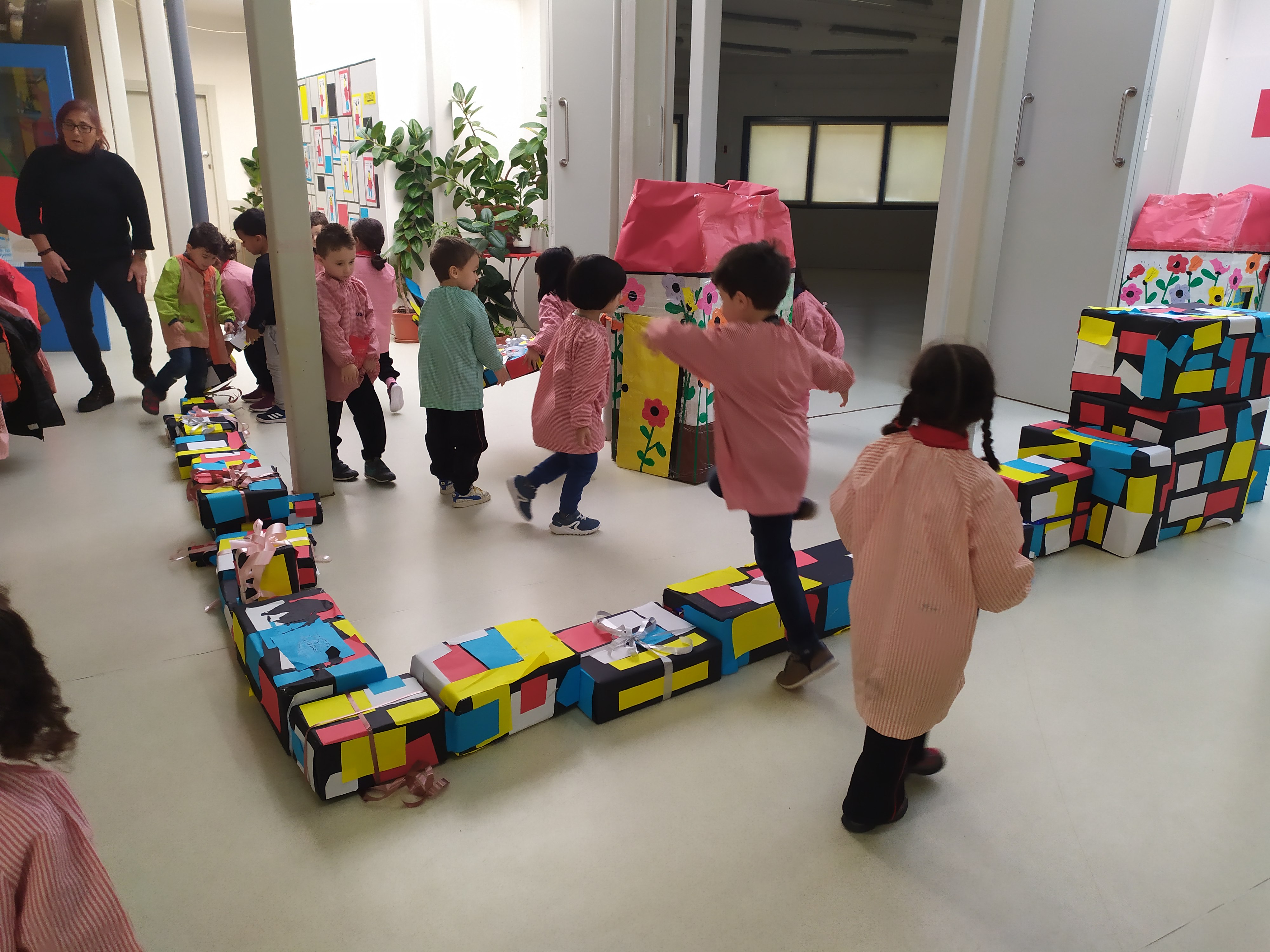 Aprofitant les caixes que vàrem usar per construir el nostre arbre de Mondrian a l’exposició de Som Art, hem fet un joc per a desenvolupar la imaginació i la creativitat amb els nostres alumnes.
