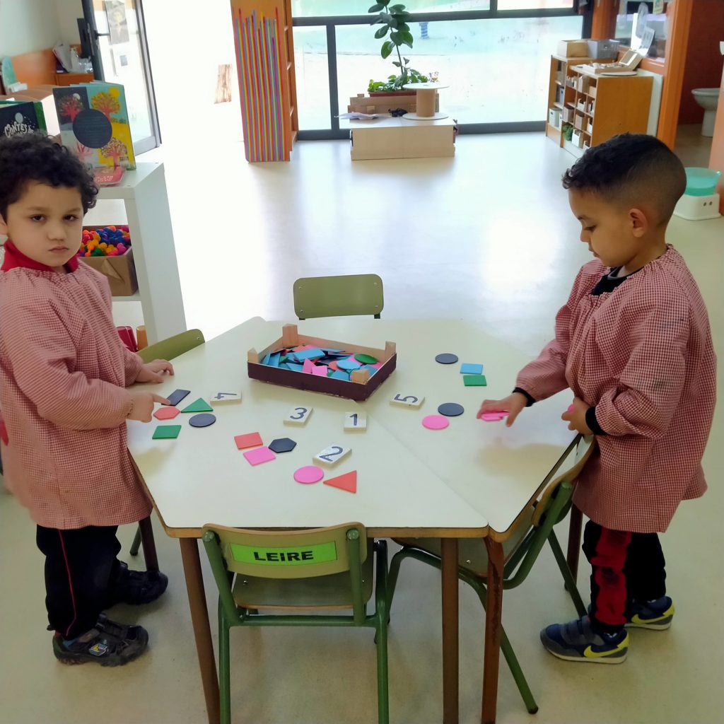 P4 a les sessions de matemàtiques aquesta setmana preparem jocs de comptatge. Juguem lliurement a les activitats preparades a les taules.