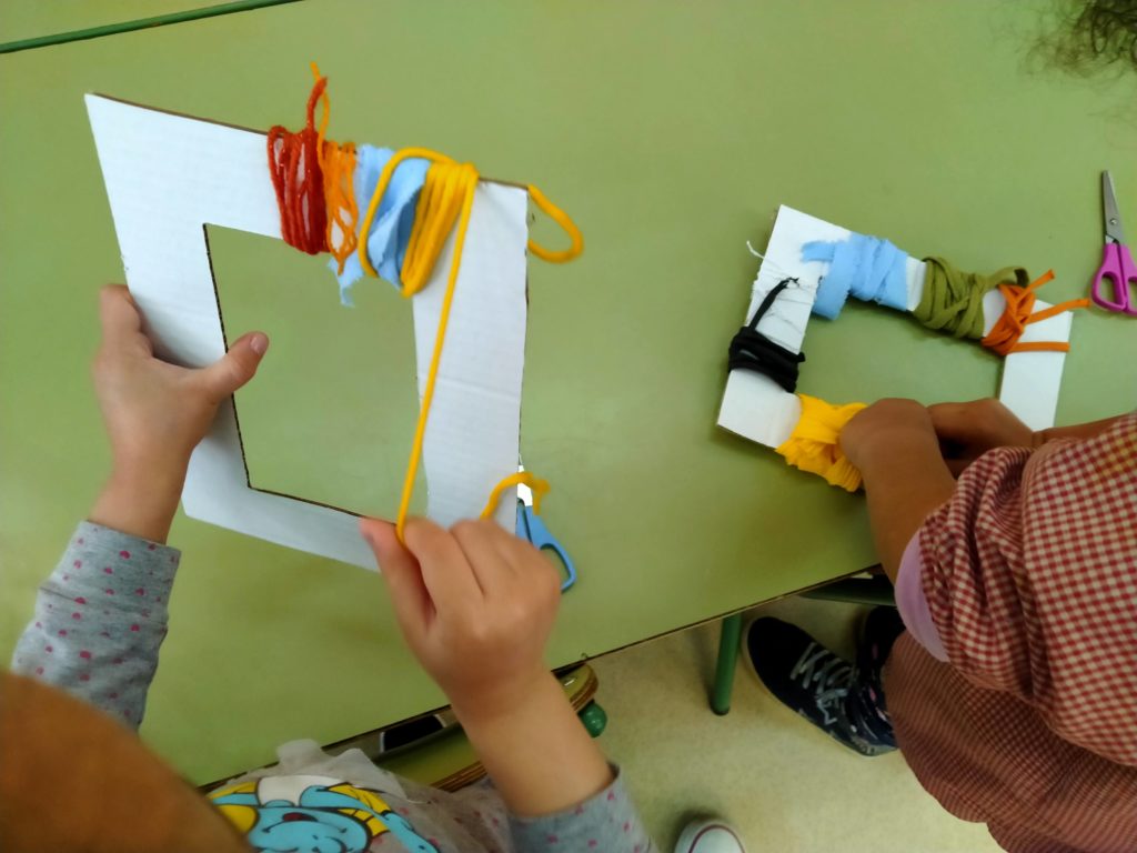La inspiració de teixir de la Judith Scoot, ens ha portat a teixir el marc de fotos que emmarcarà les paraules boniques fetes amb llenguatge de signes
