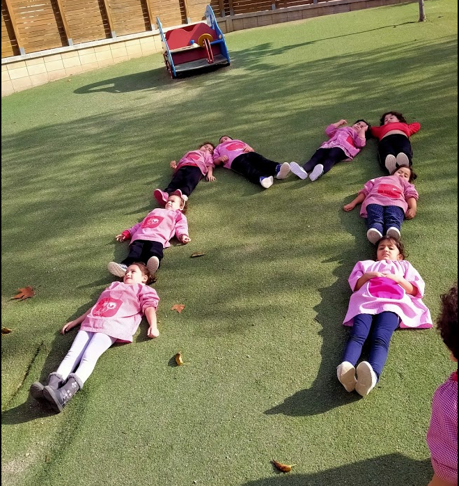 A P4 seguim amb l’entrenament de la consciència fonològica i, a la vegada, ens acostem a la lectoescriptura basant-nos en el nostre nom. I per això ens fixem en la inicial. En aquesta ocasió ens fixem amb la M. Durant vàries setmanes, hem fet llistats de paraules amb M, hem classificat paraules amb M i sense, hem buscat la grafia M en paraules, hem anat treballat i interioritzat la grafia a través del propi cos, construint-la, fent traç a la sorra, escrivint en pissarres…