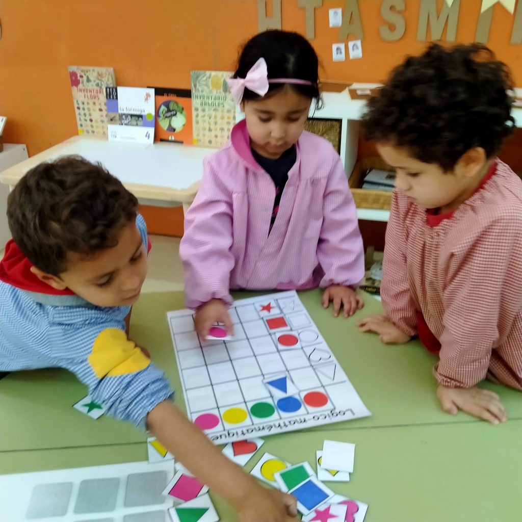 A p4 juguem amb els quadres de doble entrada. Una excel·lent eina per a treballar la percepció i discriminació visual, així com la el raonament lògic matemàtic exercitant el pensament, l’anàlisi de conceptes i la creació de relació i combinacions. HO fem en parelles o petit grup d’aquesta manera també potenciem l’aprenentatge cooperatiu i la comunicació.