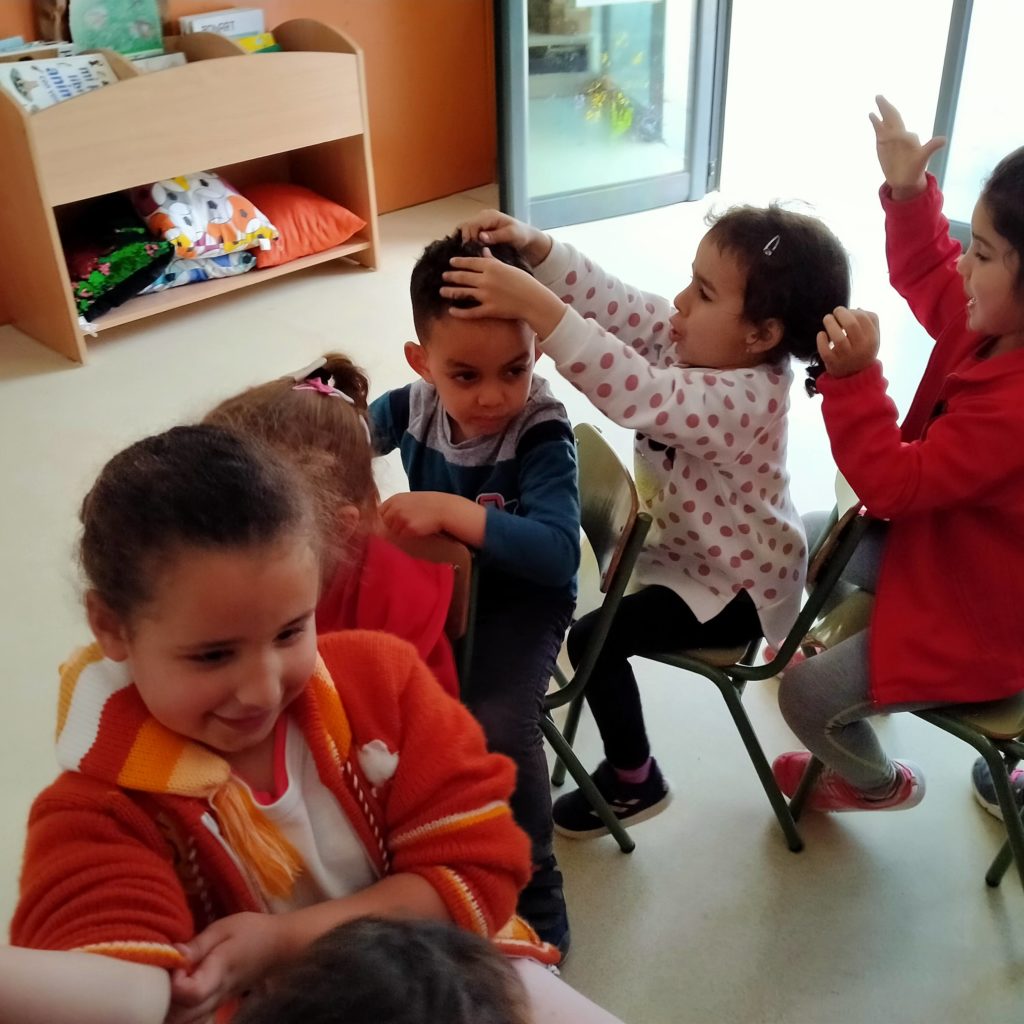 A P4 avui hem acabat així la sessió de psicomotricitat: roda de massatges al ritme de la música de Leroy Anderson. No us perdeu les fotos i els vídeos