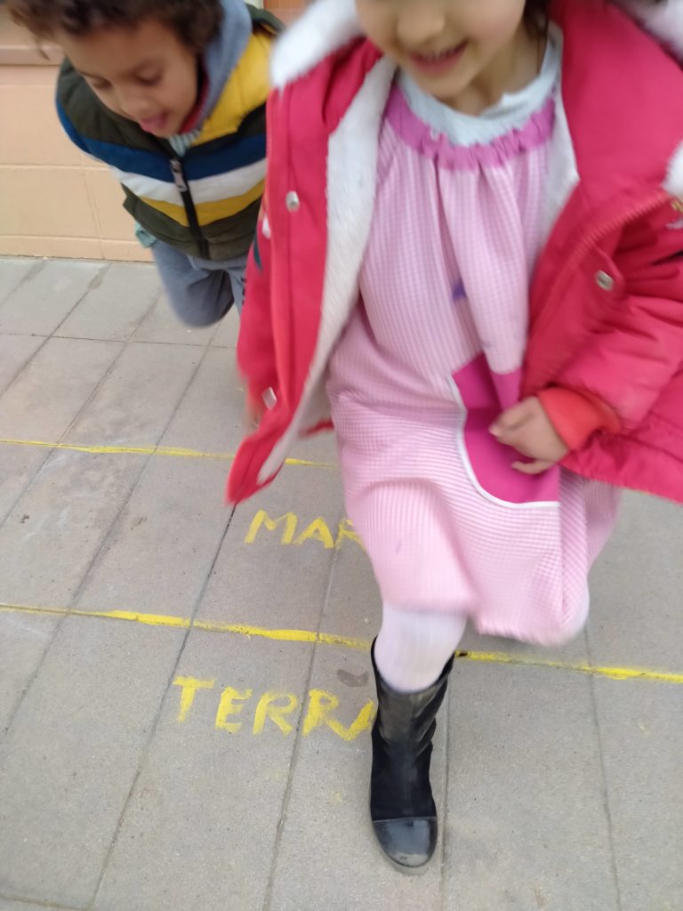 Seguim jugant a jocs tradicionals. En aquesta ocasió: terra, mar i aire. Un joc motriu, que a més treballa l’atenció auditiva, la planificació del moviment, la coordinació…. A més, és molt divertit!!!