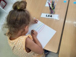 És interessant que l’alumne prengui consciència dels moviments que ha de realitzar i de la direcció del traç abans de començar a escriure. Els nens i nenes durant l’etapa d’educació infantil va madurant progressivament en la coordinació mà-ull, es va definint lateralment i va desenvolupant la funció simbòlica de l’escriptura.