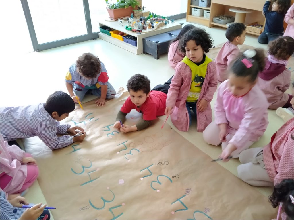 Repassem la grafia del tres i el quatre i la noció de quantitat. les coses en grup sempre ens agraden més! Fem la grafia, comptem, representem la quantitat, i després retallem objectesd’una revista, tants objectes com el nombre representat! jo tinc una cadira, una taula, i un sofà, són tres mobles!!!