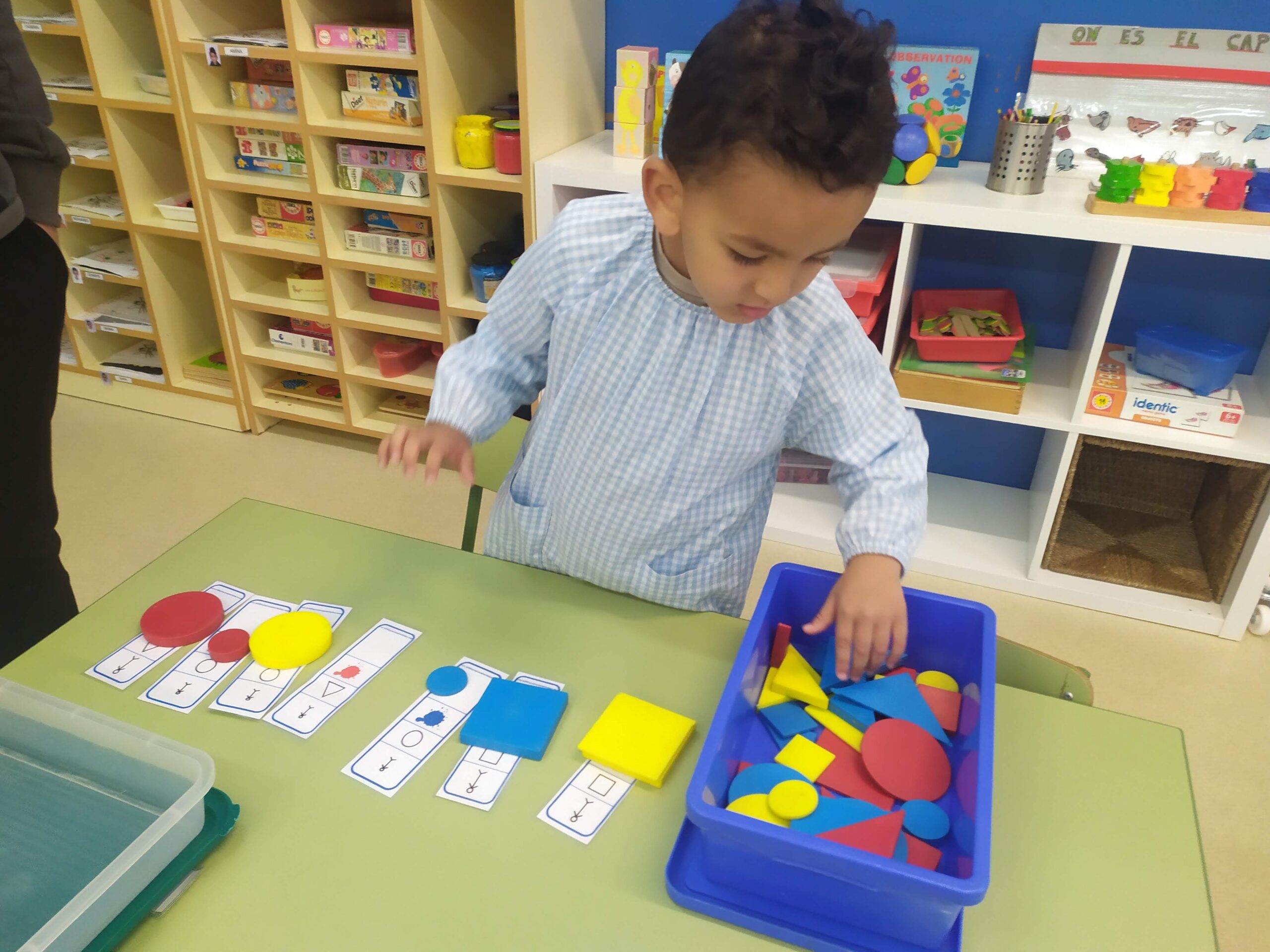 Una sessió setmanal fem desdoblaments amb la senyoreta Laura i així aprofitem amb mig grup per a fer jocs matemàtics diversos de forma manipulativa i vivencial: numeració i càlcul, geometria, lògica i raonament, orientació espacial…
