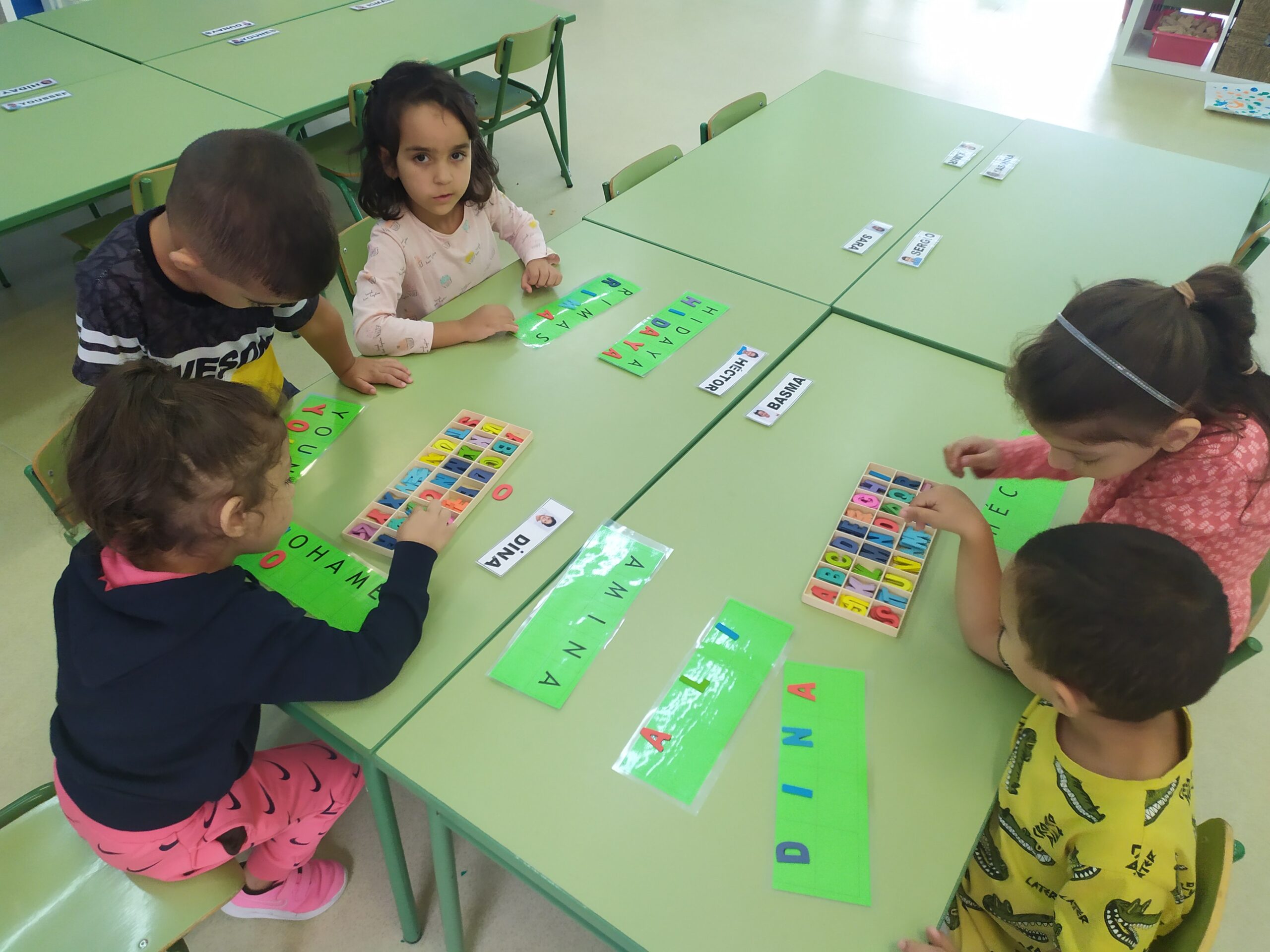 Jugar amb lletres mòbils a partir del propi nom, del nom dels companys i d’altres paraules és una molt bona manera d’iniciar el procés de lectoescriptura. Comencen a reconèixer la seva forma, a discriminar les unes de les altres i a identificar quines pertanyen al seu nom o al nom d’algun company o companya. Aquí els primers jocs d’aquest curs !!