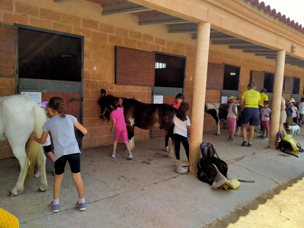 A p5 avui hem fet l’excursió de final de curs. Primer hem anat amb autobús a la Hípica Aiguamolls, allà després de fer una volta i conèixer l’entorn, hem pogut raspallar els ponis que posteriorment hem muntat. També hem pintat una ferradura per emportar-nos-la de record.