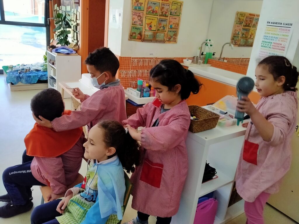 Els nens i les nenes de P5 han estrenat i han gaudit de nous espais de joc i aprenentatge. Aquí els podeu veure jugant a la perruqueria, al nou minimon d’hivern, als jocs de l’arc de sant Martí,… també gaudint dels nous materials del racó de l’artista…