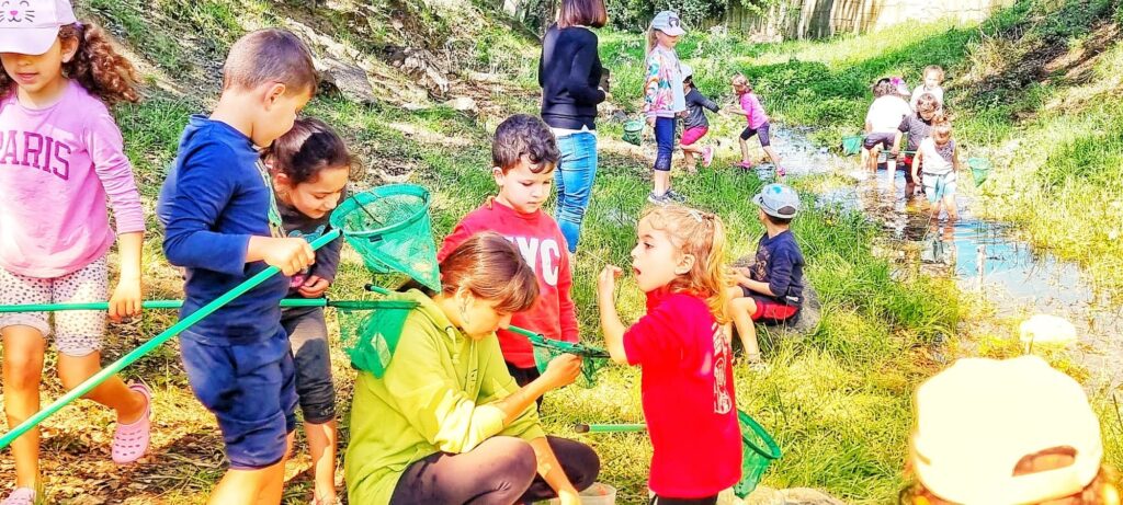 Avui P5 hem anat a la riera dels Ginjolers amb la Clara. Ella ens ha explicat un conte sobre una anguila i després hem pogut tocar alguns peixos i amfibis que portava. Tots i totes hem volgut tocar amb cura aquests animals. Després d’esmorzar, amb salabrets i galledes, hem posat els peus al riu per tal d’agafar larves de diferents animals: mosquits, libèl·lules… I atambé algun cap gros.  La veritat és que ens ho hem passat genial!