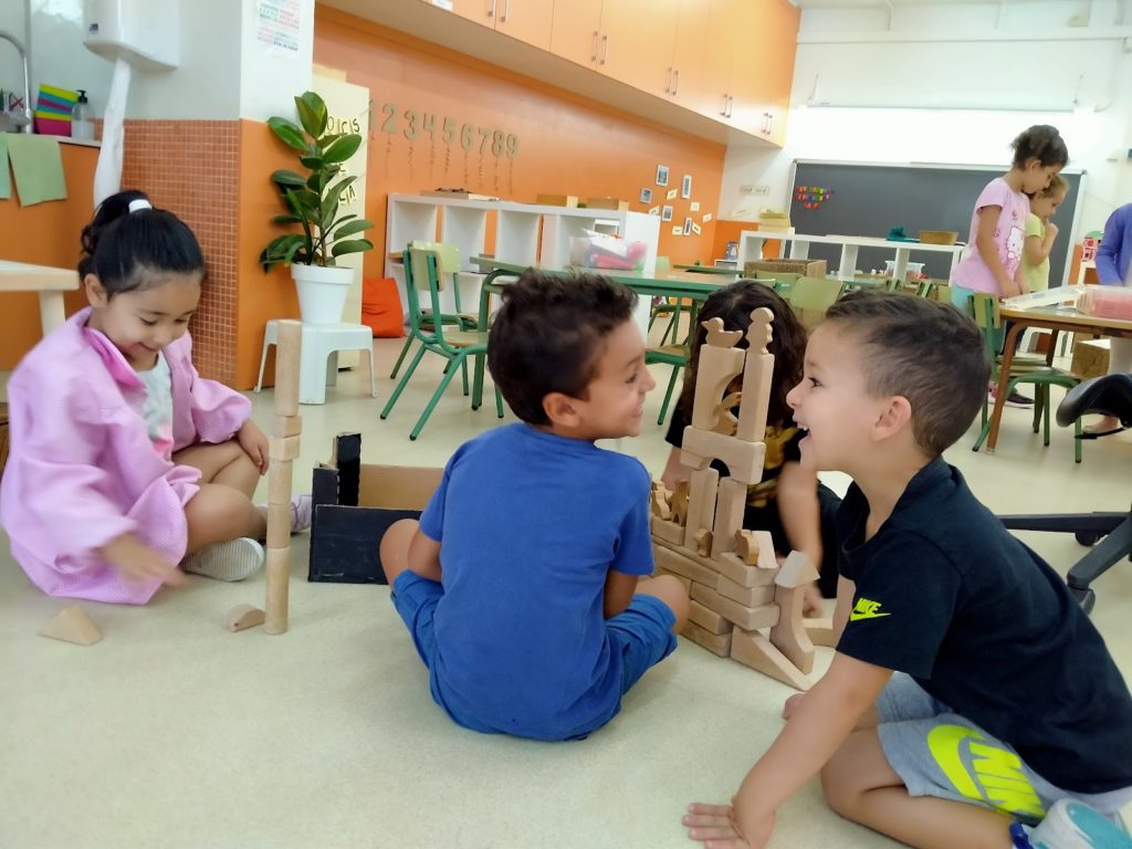 Els matins, quan arriben i troben paradetes per a jugar i parar-se es crea un ambient màgic. uns dels matins la cosa anava de construir. I mireu les cares, ho diuen tot. I mireu les construccions!!