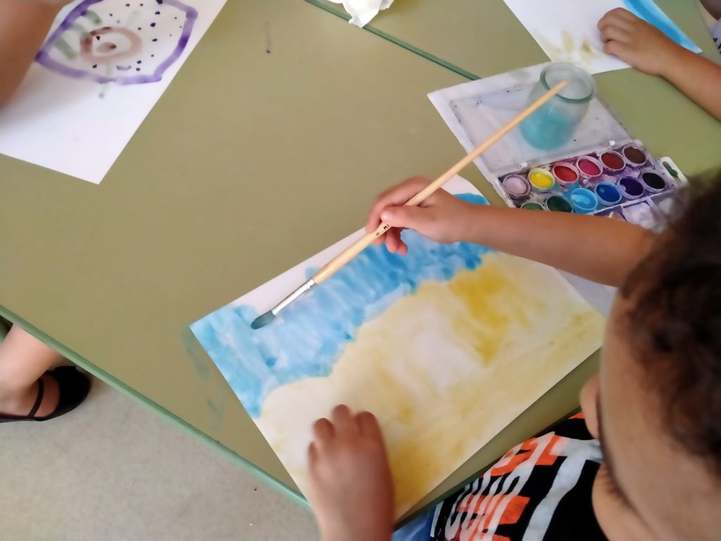 Les nenes i els nens de p5, després d’explicar a la rotllana què havien fet a l’estiu i quins records tenien, en van triar un per plasmar-lo en un paper a través d’aquarel·les i retoladors. Es nota que vivim a prop del mar! quins dibuixos més preciosos! quins i quines artistes!