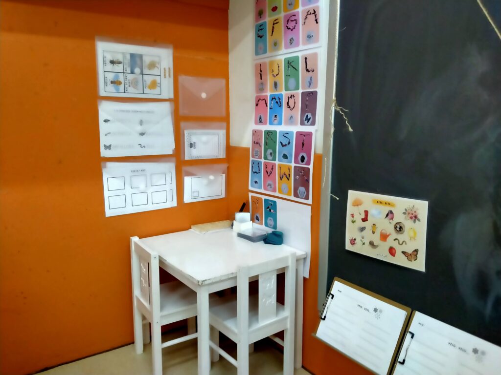 A P5 hem estrenat el racó d’escriure. On podem trobar el abecedari que vam fer amb els nostres cossos i estris per a escriure. A dins d’un sobre enganxats a la paret els nens i les nenes hi troben diferents propostes a fer: llistat de paraules, cartes pels amics, dictat mut, copiar paraules… I aquests dies estem presentant i provant les diferents activitats que hi poden trobar.
