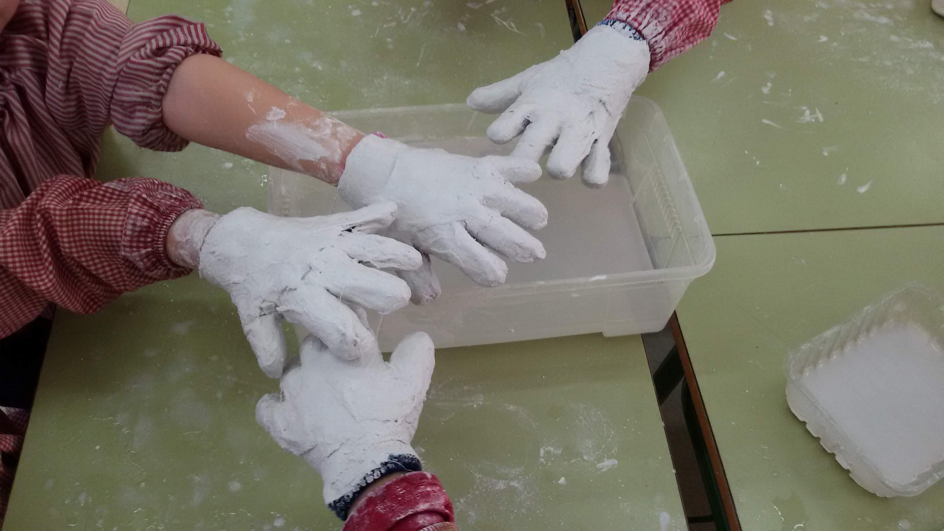 A p5, inspirats en el nostre artista proper Narcís Costa i la seva sèrie roba estesa, hem creat la nostra pròpia sèrie utilitzant benes de guix. cada nen i nena triava la peça de roba que volia per tal d’embenar-la amb guix i després estendre-la a l’exposició.